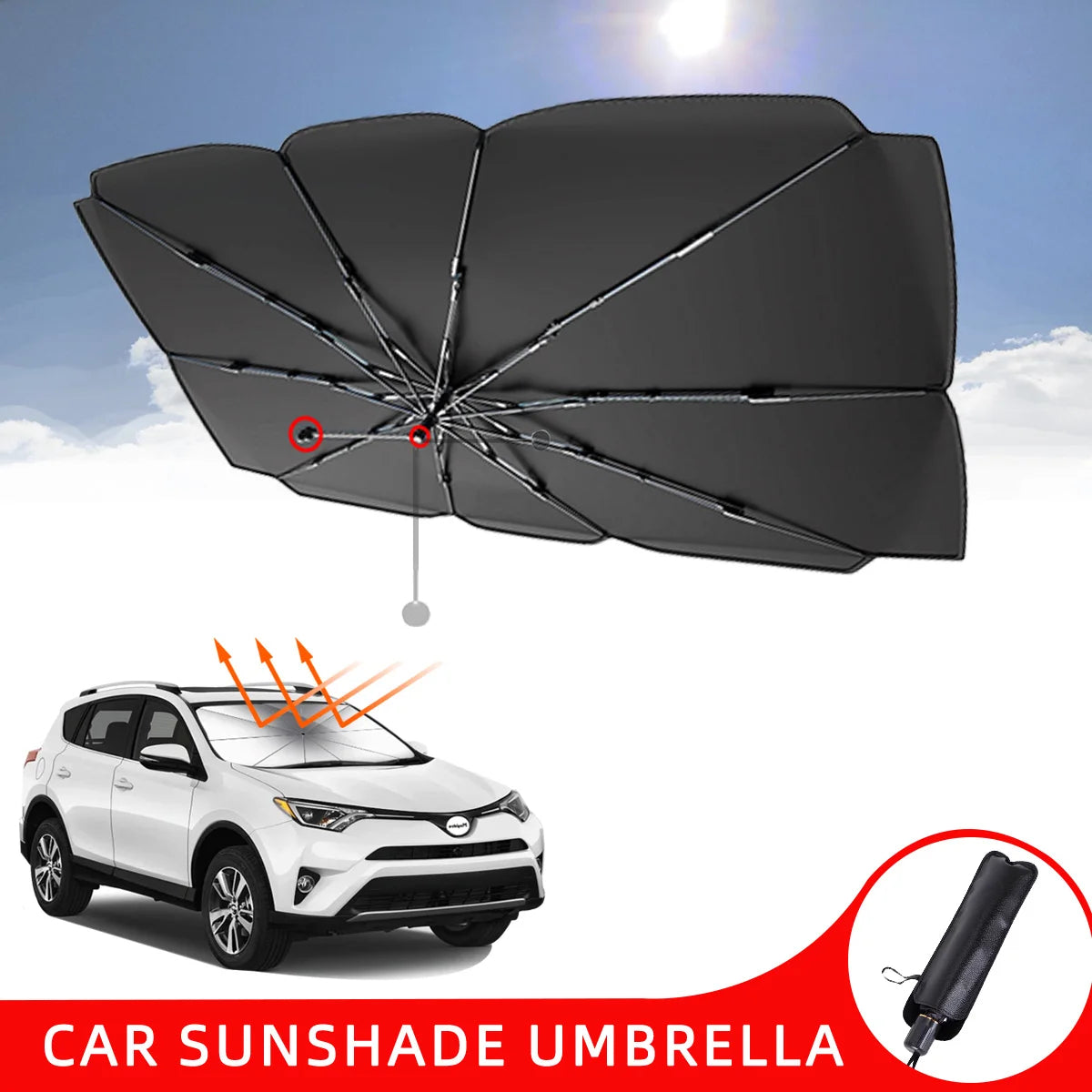 Trending Height offers this umbrella style car sun shade as a solution for harsh sunlight. Create a pleasant cabin environment even on the hottest days. You will enjoy how simple it is to use and store this shade every day.
